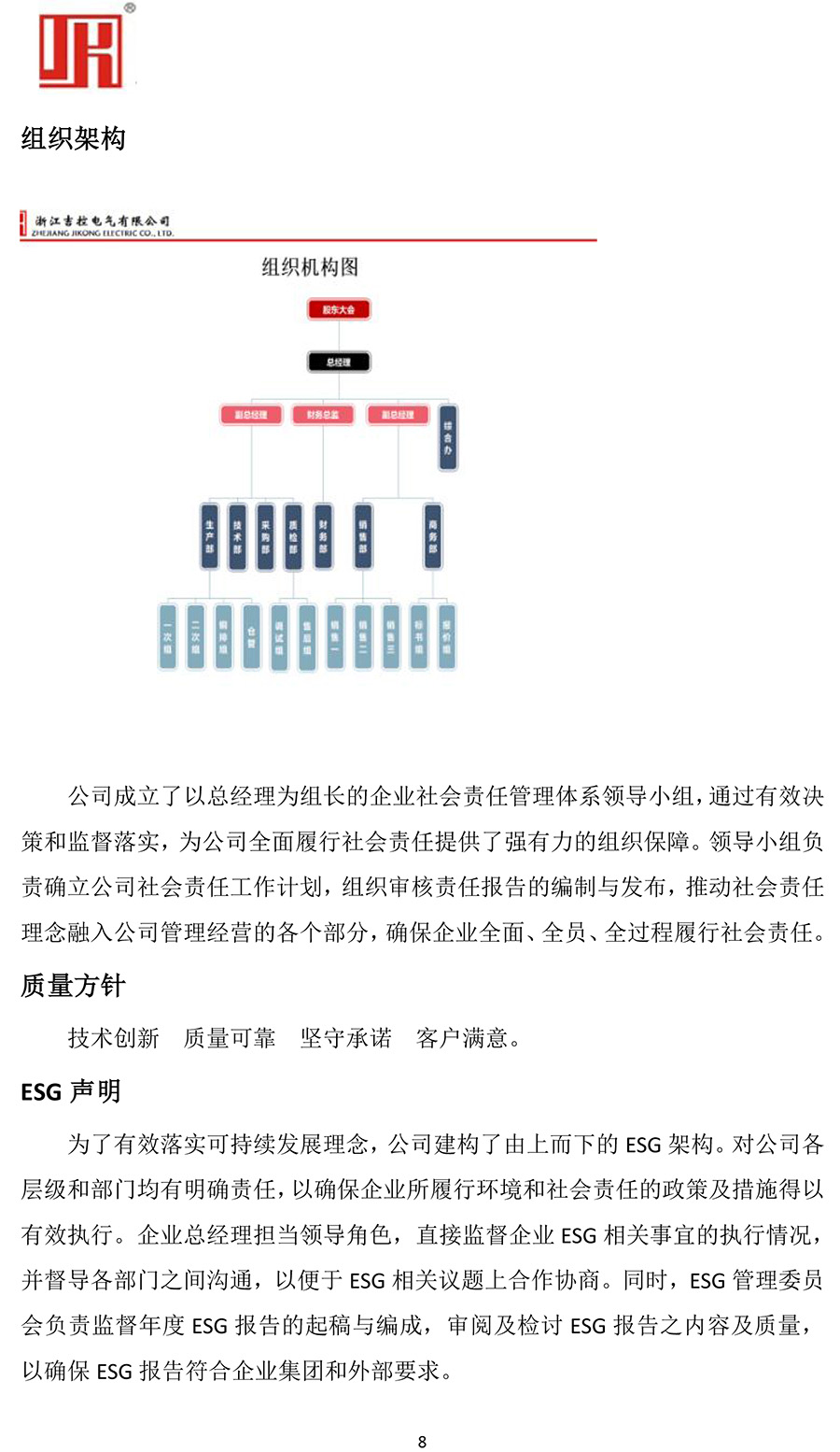 浙江吉控電氣有限公司環(huán)境、社會與公司治理(ESG)報告